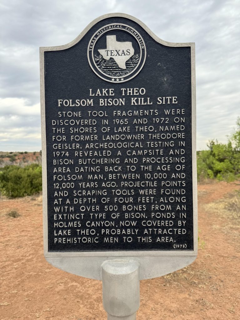 Archeologists believe Folsum evolved from the earlier Clovis culture. The timing of Folsum technological innovation coincided with the extinction of most North American megafauna, including the bison bones found here. Whether the extinctions of megafauna were caused by climate change or over-hunting by Paleo Indians or both, is an ongoing area of study.